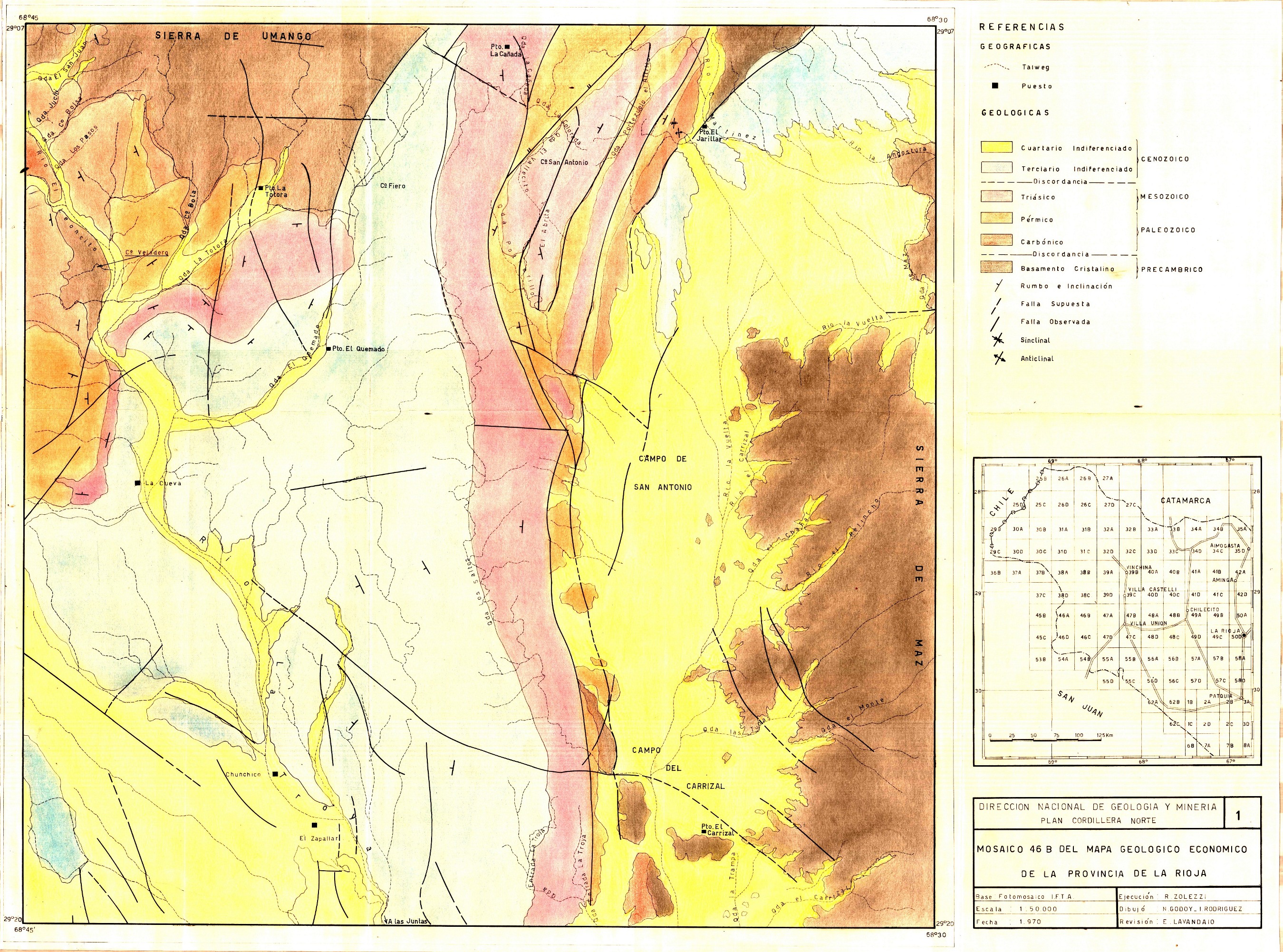 Argentina. Dirección Nacional de Geología y Minería. Plan La Rioja, 1970. Descripción del Mosaico 46B del Mapa Geológico Económico de la Provincia de La Rioja. La Rioja, Dirección Nacional de Geología y Minería. Plan La Rioja (ex Delegación Plan Cordillera Norte)