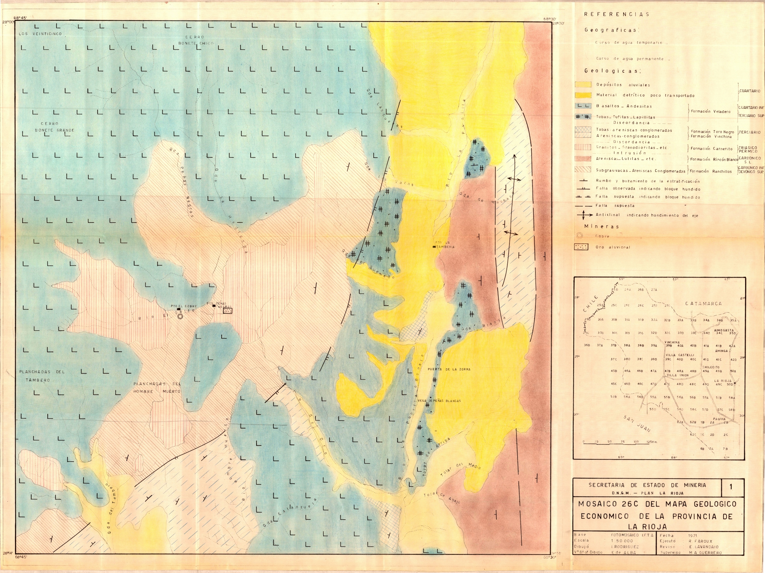 Faroux, R.H. 1971. Descripción del mosaico 26C del mapa geológico económico de la Provincia de La Rioja. 34 pp. La Rioja, Ministerio de Economía y Trabajo. Secretaría de Estado de Minería