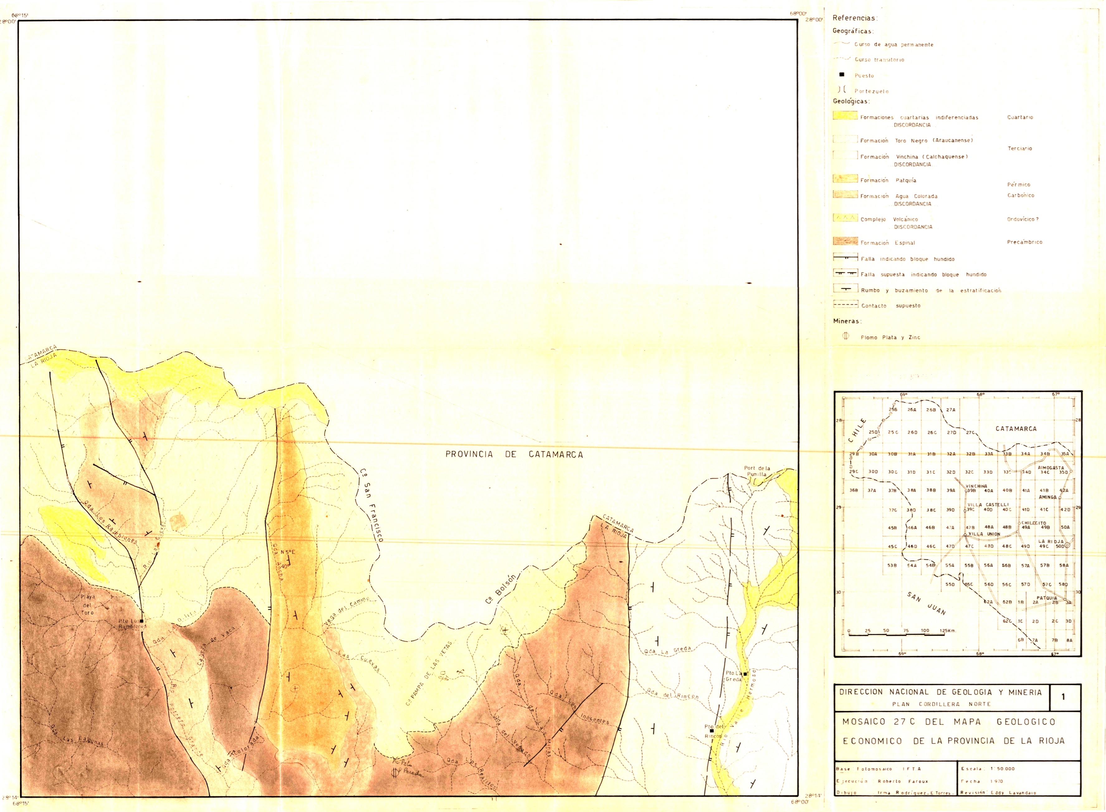Argentina. Ministerio de Economía y Trabajo. Secretaría de Estado de Energía y Minería. Plan La Rioja. 1970. Descripción del mosaico 27C del mapa geológico económico de la Provincia de La Rioja. 31 pp. La Rioja, Secretaría de Estado de Energía y Minería. Plan La Rioja