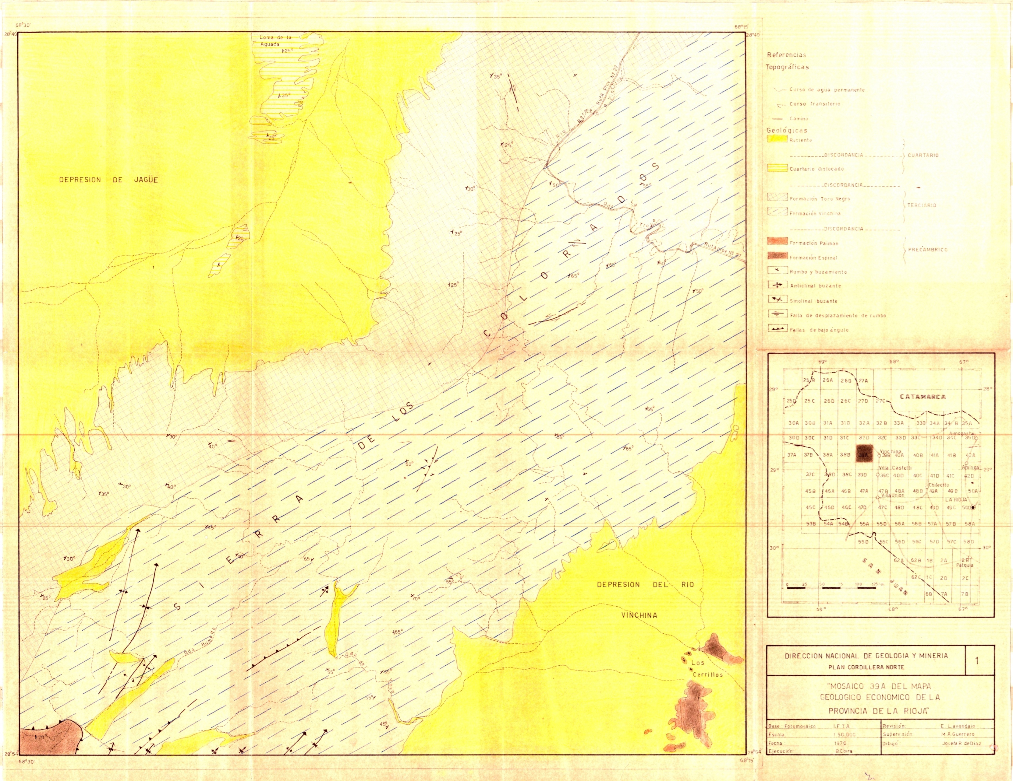 Argentina. Dirección Nacional de Geología y Minería. Plan Cordillera Norte. 1970. Descripción del Mosaico 39A del mapa geológico económico de la provincia de La Rioja. 19 pp. La Rioja, Secretaría de Estado de Geología y Minería. Plan Cordillera Norte